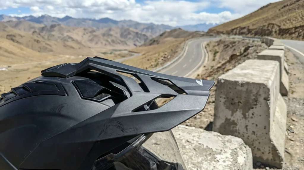 • The Warning: This helmet is ‘High-Flow,’ meaning it’s great for the heat of Rajasthan but can be noisy if you don’t wear earplugs. However, it does not whistle – the peak is rock solid.